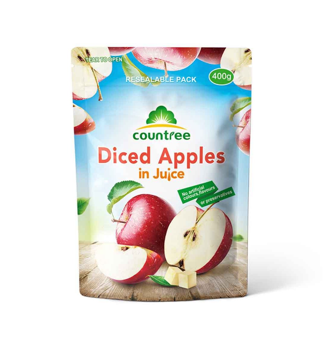 Apple dice in pouch