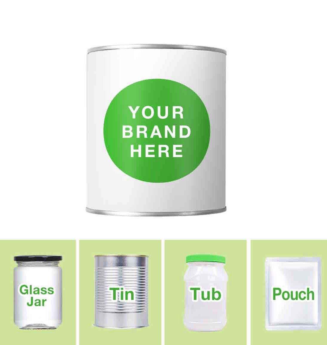 Customer unit packing: in tins/jars/fruit cups/ tubs/pouch/customized