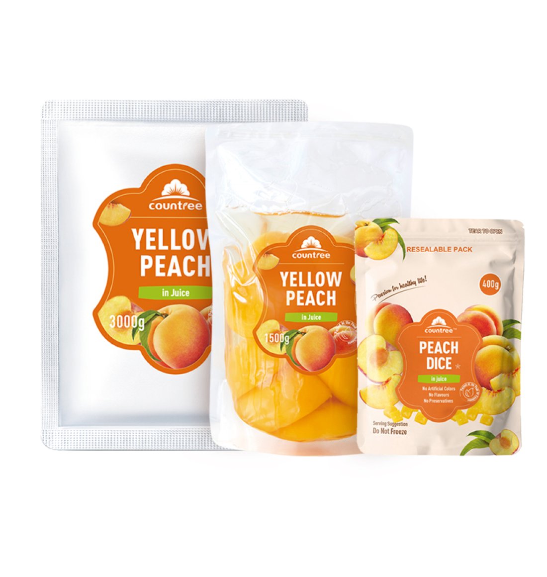 Our 1500g yellow peach pouches are not only packed with juicy, ripe peaches but also come in eco-friendly, recyclable packaging. Partnering with renowned retailers like Tesco and Kroger, we're committed to sustainability without compromising on taste or quality. Ideal for retail and food service, these pouches offer convenience and a reduced environmental footprint.