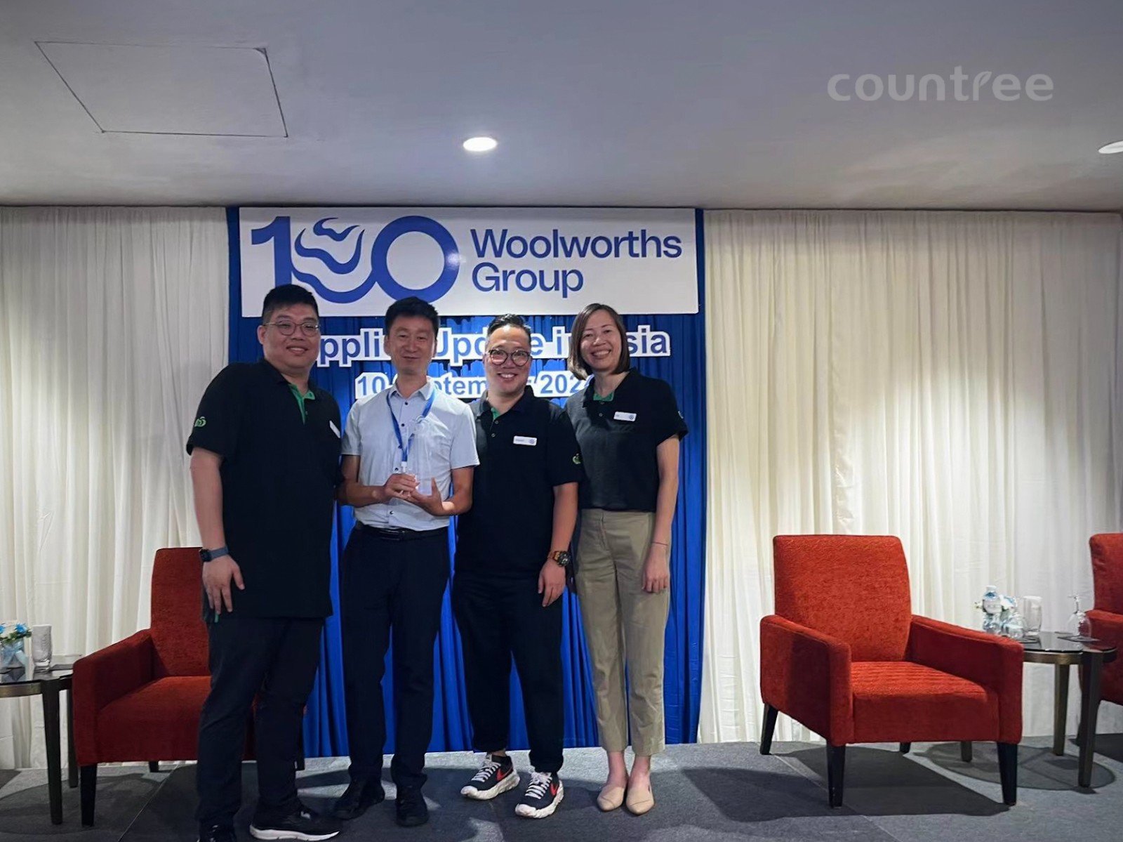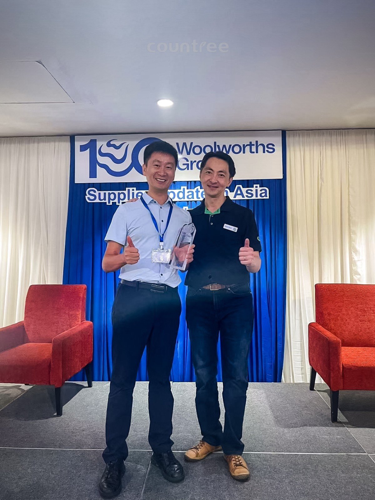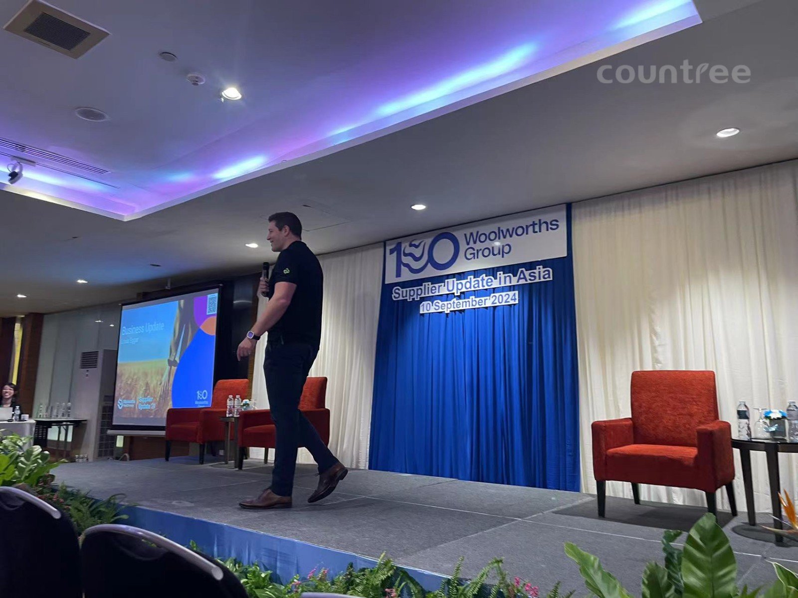 Chris San, Chairman of the Board of Countree, spoke as an award-winning vendor and had smooth and fruitful communication with Woolworths team members Louis, Sanjay, JP, Ivy, Jason, Vincent, and others.