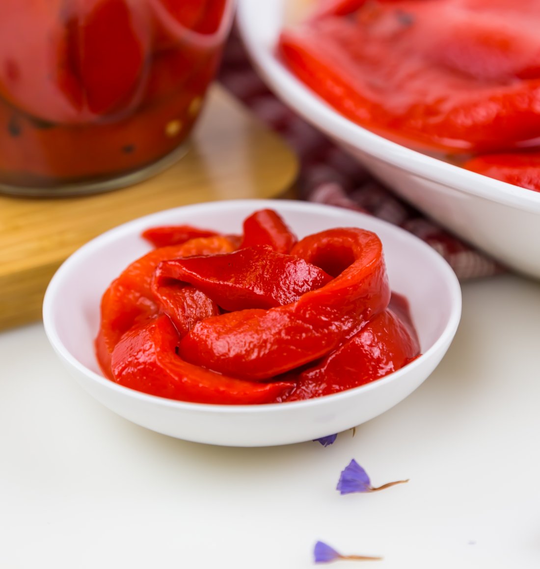 Roasted sweet pepper slices with garlic